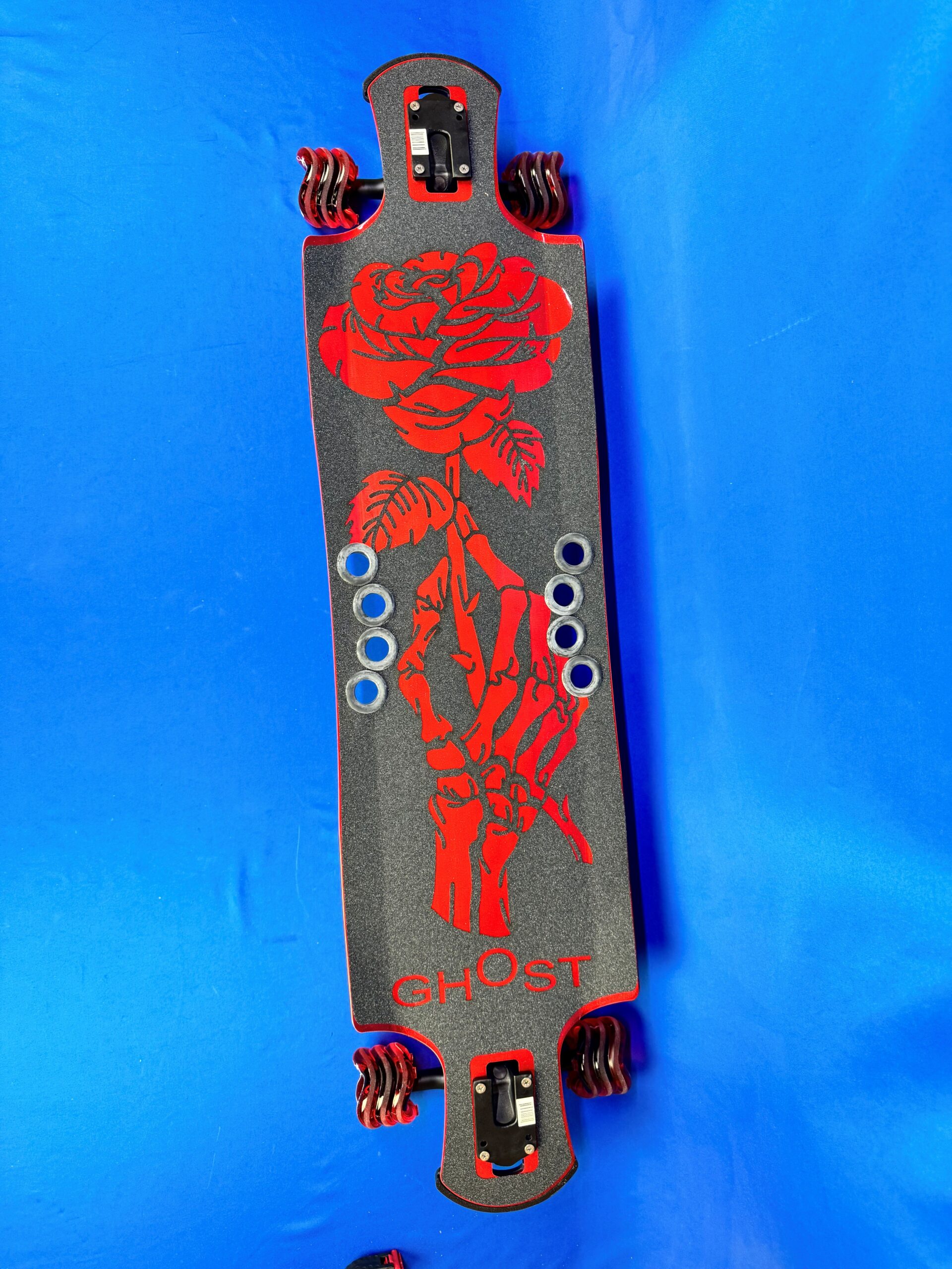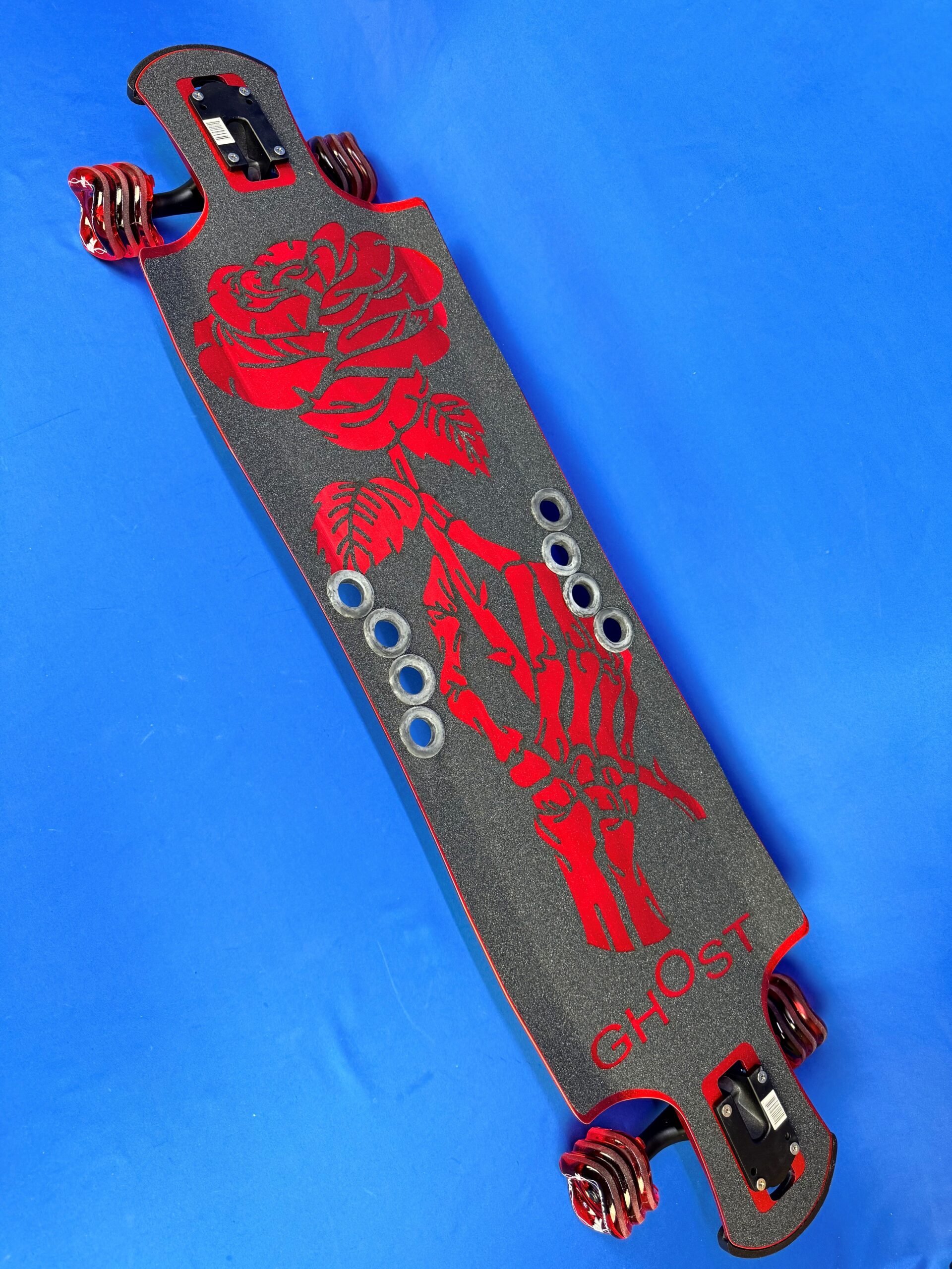 The Aluminum Custom Longboard Skeleton Rose (42″) delivers high speed, control, and durability. Built from solid aluminum with premium components and a sleek powder-coated finish.