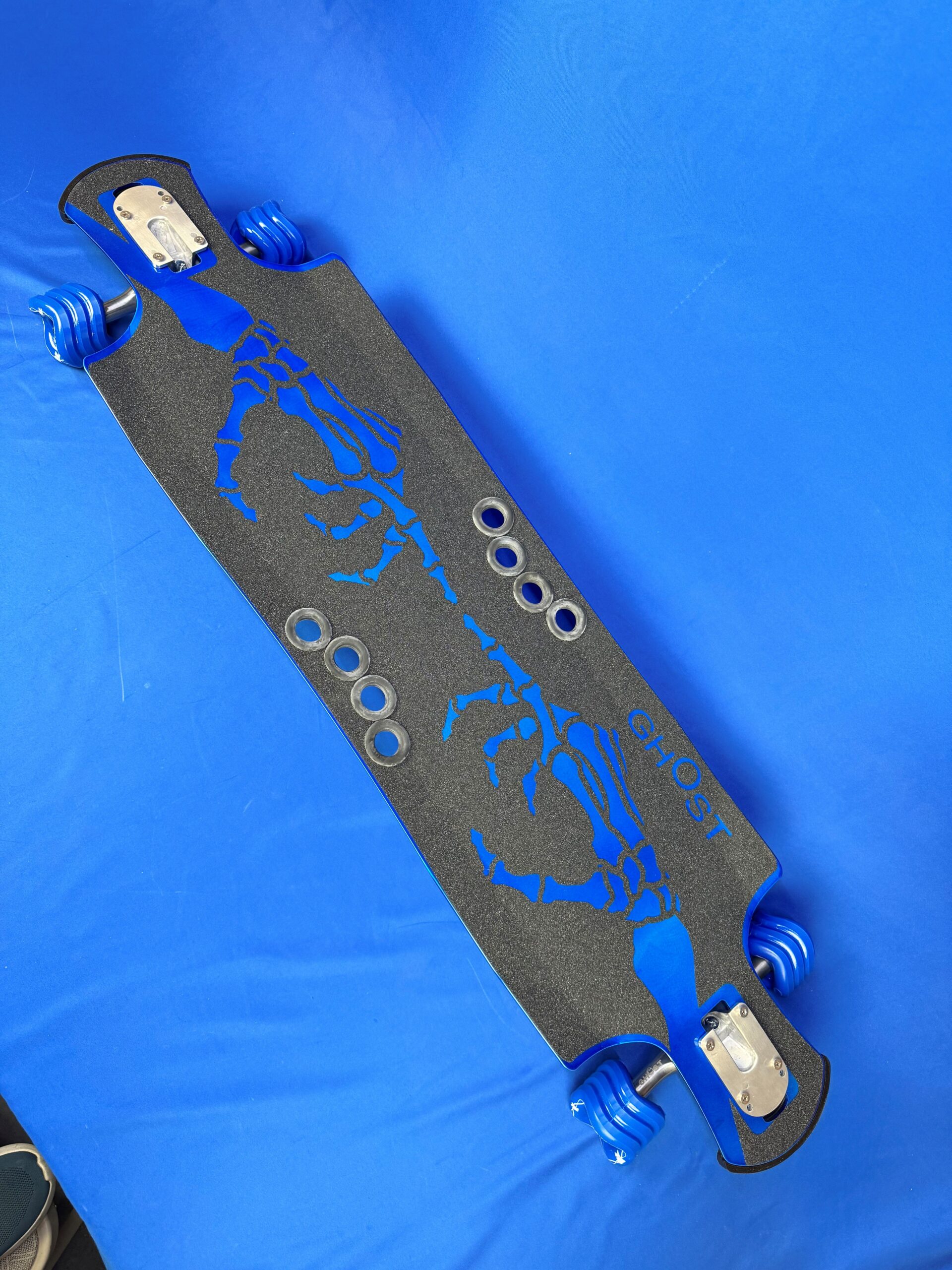 Custom Aluminum Longboard Skeleton Hands Blue 42 Inch