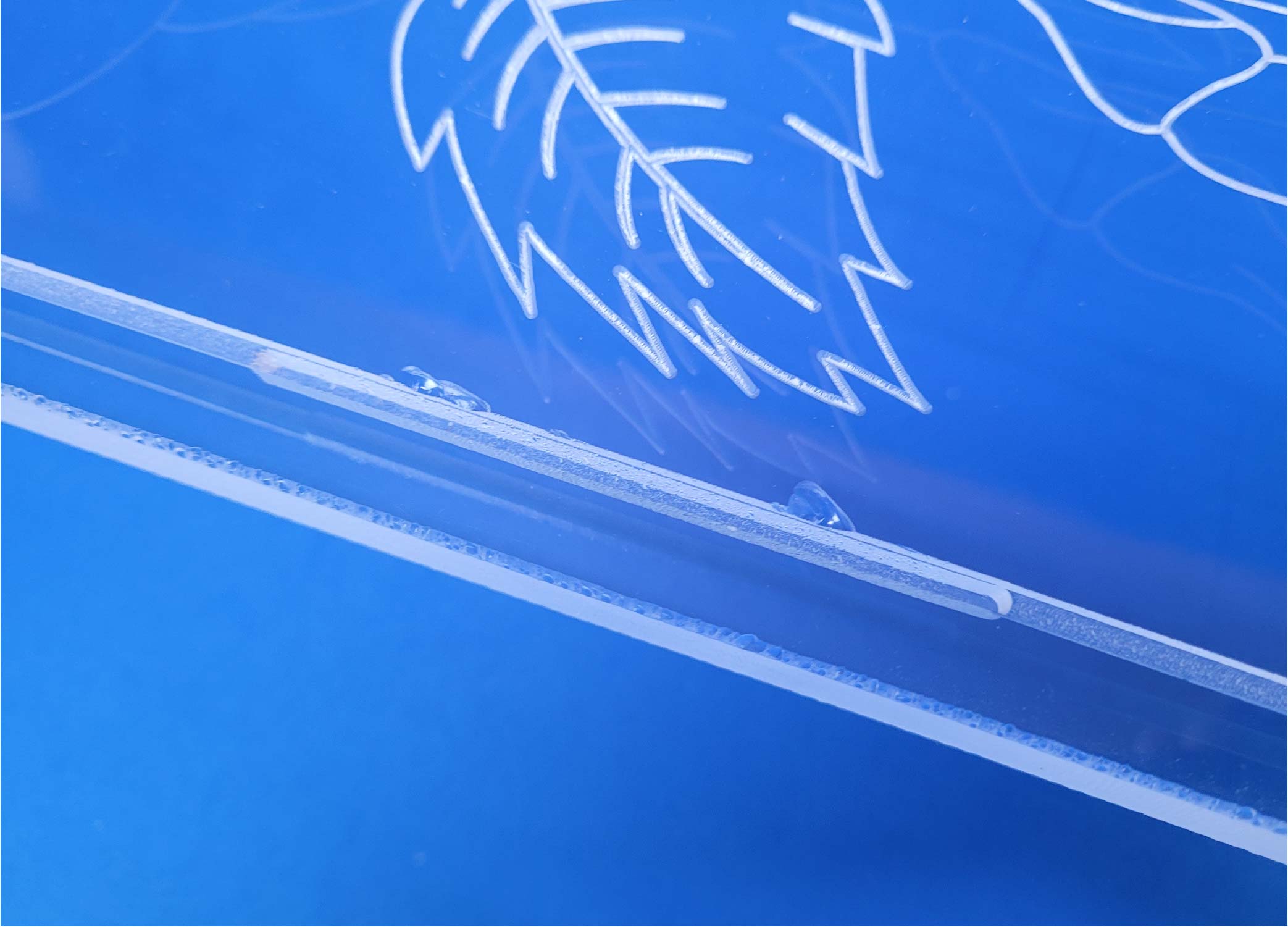 This board has an engraving error – a small section of the border was engraved deeper than the rest (see picture), and the Shark wheels are slightly discolored.