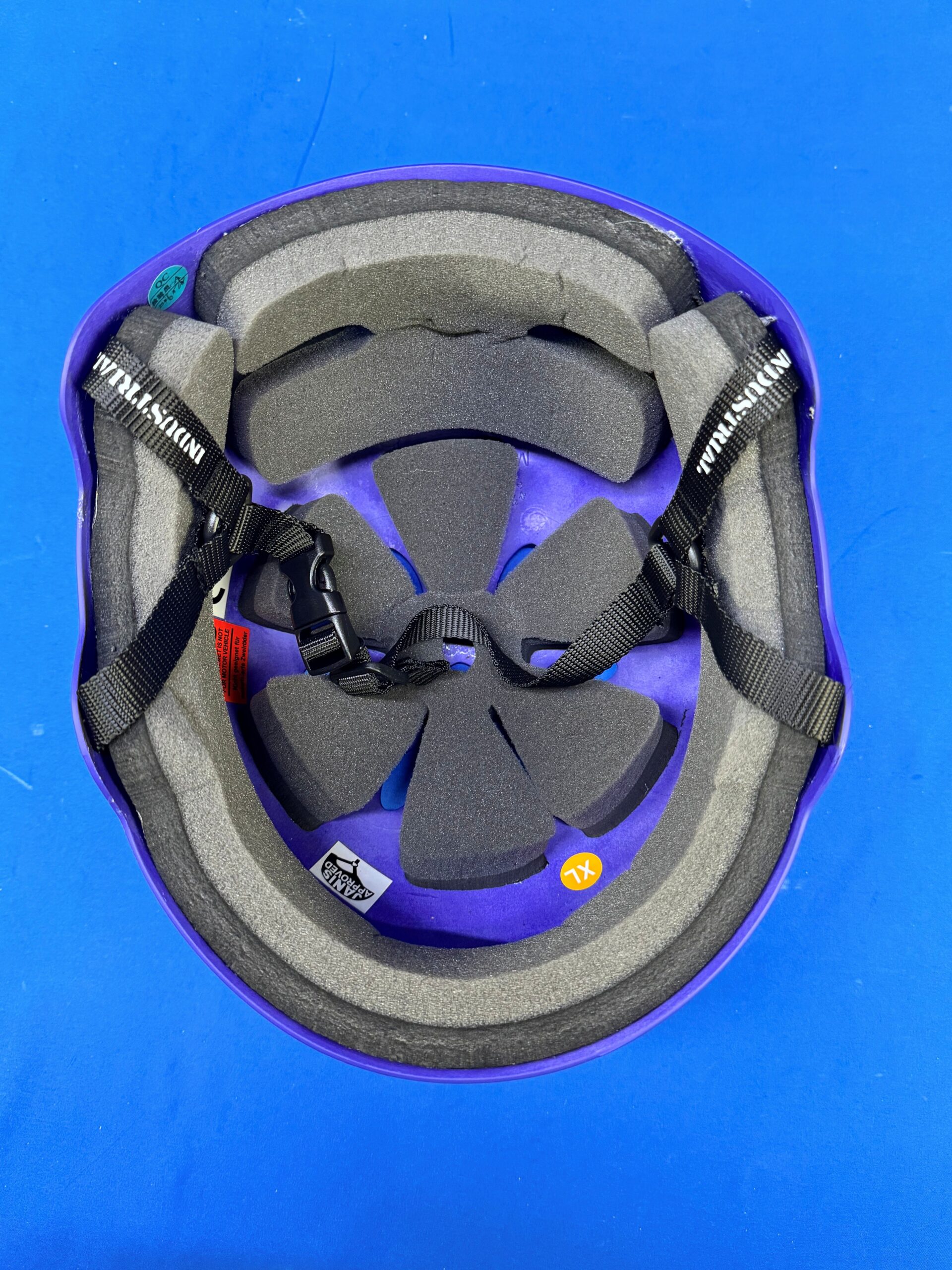 The Industrial Flat Purple Skateboard Helmet – XL features an impact-resistant shell and padded interior for comfortable protection while you skate. Lightweight, breathable, and adjustable for a secure fit.