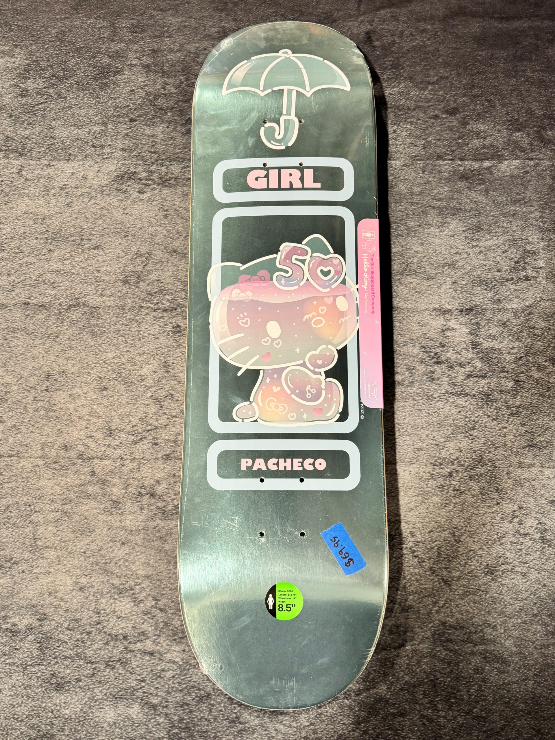 Girl x Hello Kitty 50th Anniversary Skateboard Deck – 8.5″ Silver Green