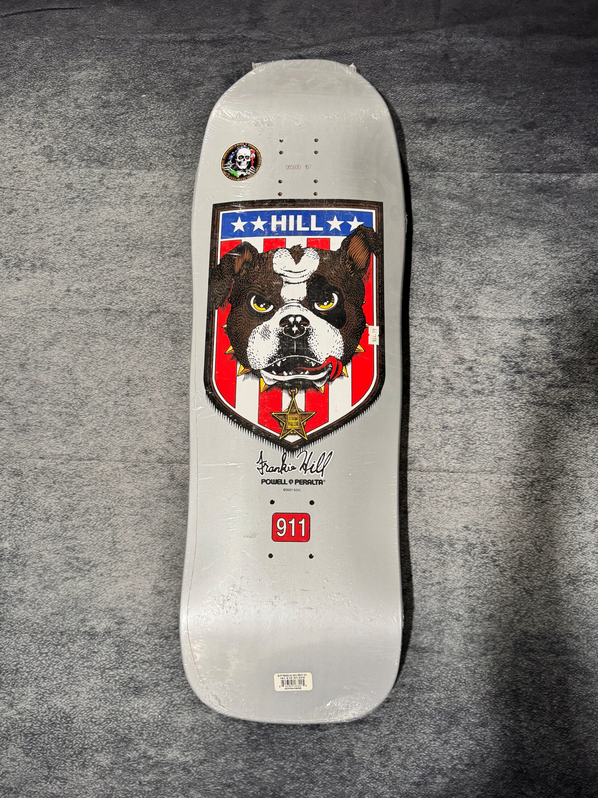 Slug: powell-peralta-frankie-hill-bull-dog-silver-skateboard-deck